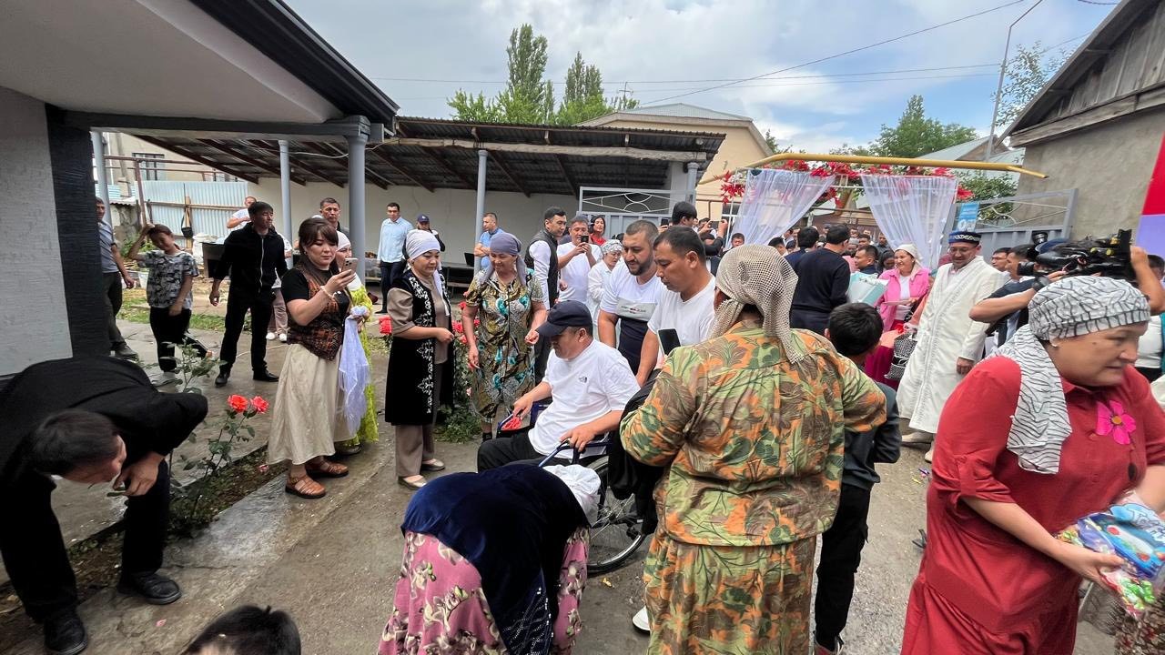 Қасиетті жұма күні сауапты істі ұран қылған түлкібастықтар үйдің ауласында 300 адамға ас беріп, Қаратаевтар отбасына үйдің кілтін табыстады. Жас отбасының отағасы 1-топ мүгедектігі бар азамат. Осы кезге дейін отбасымен жалдамалы пәтерде тұрып келген.
